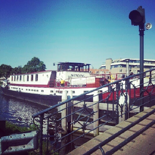 Thuis houden wij van bootjes. Manlief al van kinds af aan, en inmiddels is het virus wel zo’n beetje overgesprongen. Al kan ik nog steeds niet altijd wennen aan het zeil. Met regelmaat dromen wij over varen rond naar Engeland, naar Frankrijk, of zelfs de hele wereld rond. En dromen doen we ook over wonen op zo’n schommelend ding. Vandaag fietste ik langs de Vliet, en bij het hefbruggetje kwam deze voorbij. Groot genoeg om op te wonen, maar ach, hij heeft geen zeil.Een leuke wending geeft het wel, ooit wonen op een boot. Wie weet……