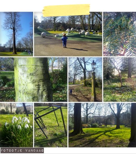 Hoera! Jullie hebben het vast ook gezien, het lijkt we Lente! Nu vind ik het lang niet altijd fijn dat ik tijdelijk, noodgedwongen, thuis zit, maar vandaag is zo’n dag waarop ik er eigenlijk best van kan genieten. Ik en P. hebben dan ook mooi van de gelegenheid gebruik gemaakt om wat vitamine zon op te doen. En ik kan je vertellen, dat is hier in huis hoognodig ook. We blijven maar proesten en hoesten, tijd dat de zon de virussen weg brand. Ik was mijn camera zoals gewoonlijk weer eens vergeten, maar met mijn telefoon is het toch aardig gelukt om wat van de lente in het park vast te leggen.