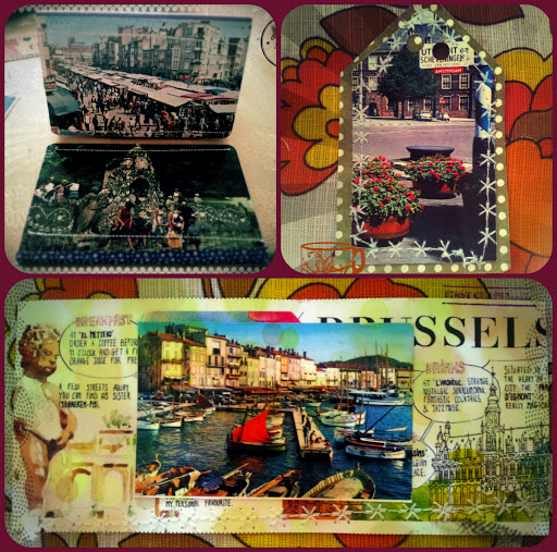 Deze week knutsel ik “retro”. Ik knipte een stapel oude kaarten in stukjes en naaide deze vervolgens op vrolijke, ouderwetse papiertjes. Zo maakte ik een hele lading boekenleggers, cadeaulabeltjes en toverde ik saaie schriftjes om in vrolijke kitsch. Je moet er van houden, dat geef ik toe, maar ik word er in elk geval vrolijk van. Dus mocht je binnenkort jarig zijn en een pakje van ons krijgen, dan is de kans erg groot dat er zo’n zelfgemaakt kaartje aanhangt!