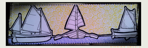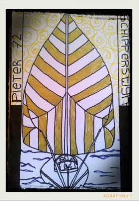 Vandaag viert mijn schoonpappa zijn verjaardag. Nu komt mijn man uit een echte bootjes familie. Iedereen vaart, zeilend uiteraard, een motorboot is voor watjes. En in de winter wordt er druk geklust aan al de scheepjes. Het zal je dan ook niet verbazen dat ik mijn schoonpappa 9 jaar geleden voor het allereerst ontmoete op een werf, al krabbend en schurend aan zijn boot. Inmiddels zitten er al vele vaartochtjes op en begin zelf ik iets van dat varen te snappen. Leren zeilen is niet mijn grootste talent maar ooit gaat het ook mij lukken een volwaardig zeilster te worden en tot die tijd functioneer ik als matroos. Voor zijn verjaardag maakte ik vanochtend dan ook iets met bootjes!