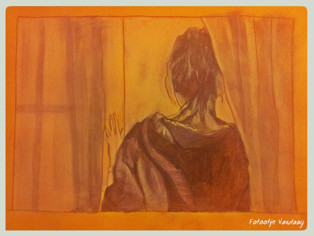 Daar staat ze dan, starend in de leegte. In de verte sterft de klank van stappen langzaam weg. De stilte fluistert in haar oor, het licht doet haar haren twinkelen. Zoete geuren van zwoele verrotting dringen door de opening van het raam naar binnen, zijn geur vermengt zich met de geuren van de herfst en waaien weg naar buiten. Het licht begint te schemeren, wordt donker, maar in haar hoofd blijft het licht.