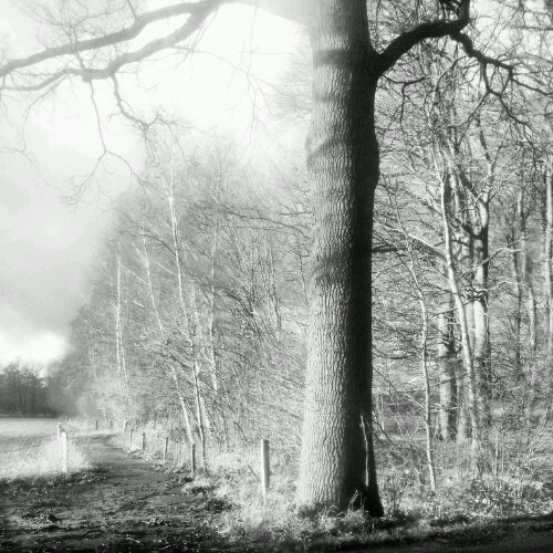 Vandaag reden we langs strand, bos en heide. Ik tuurde naar buiten en genoot van de continue wisseling in het landschap. De winter heeft de kleuren uitgewist, alleen de contouren blijven over. De kale takken, de zwarte strepen op de witte berkenbast, de eenzame zwaan op donker water, de natuur trekt zich overduidelijk terug. We rijden over een weg met een tunnel van bomen. Door het gebrek aan blaadjes maakt de zon van de takken een schimmenspel. Vlak voor de zon onder gaat toont zijn zich op haar felst. Alles is donker of licht, de wereld in zwart-wit.