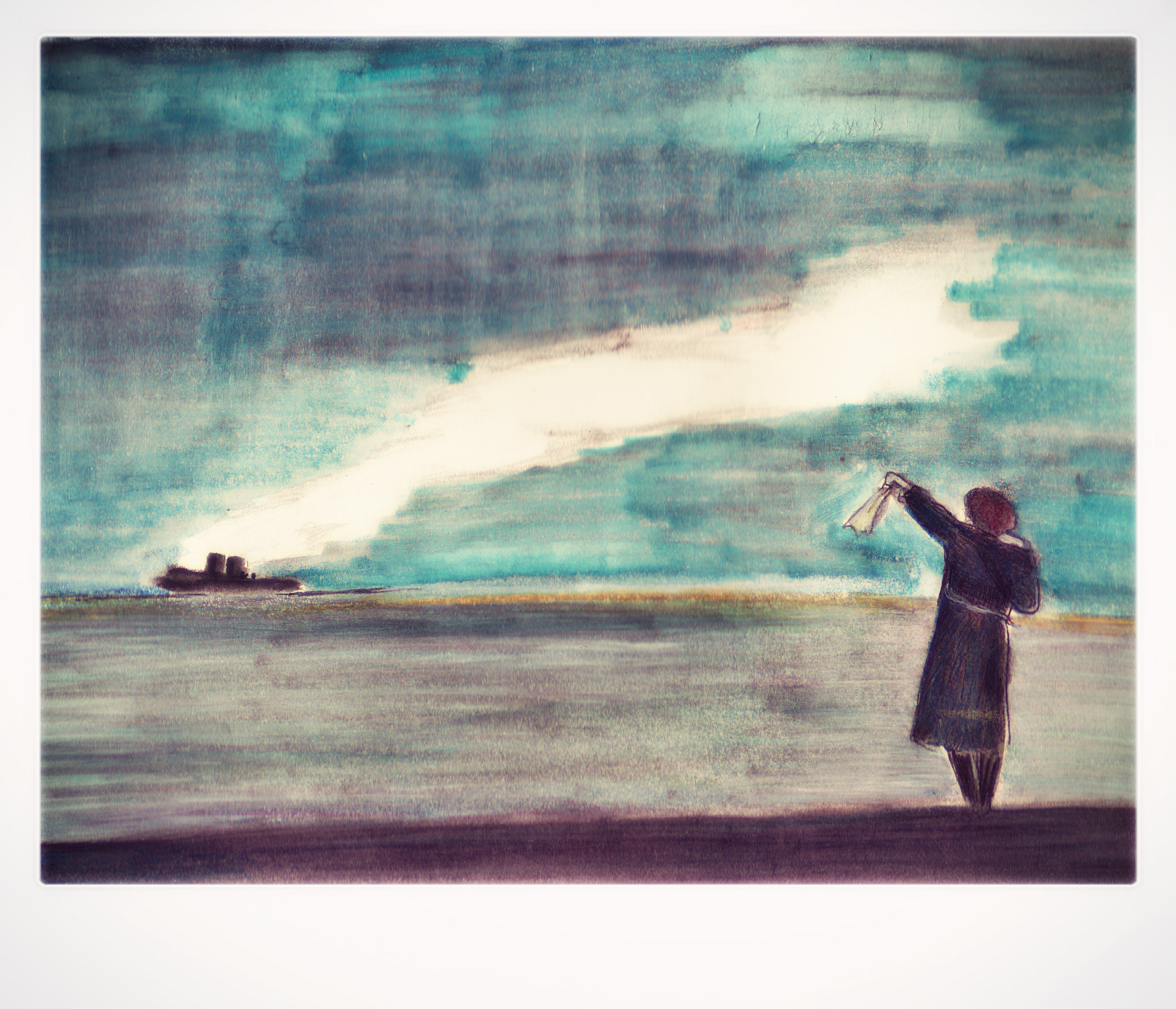 Daar op de kade danst ze nu het eeuwige lied van afscheid nemen, in elke handbeweging de belofte van een latere ontmoeting, in haar hart de angst dat deze er niet zal zijn.