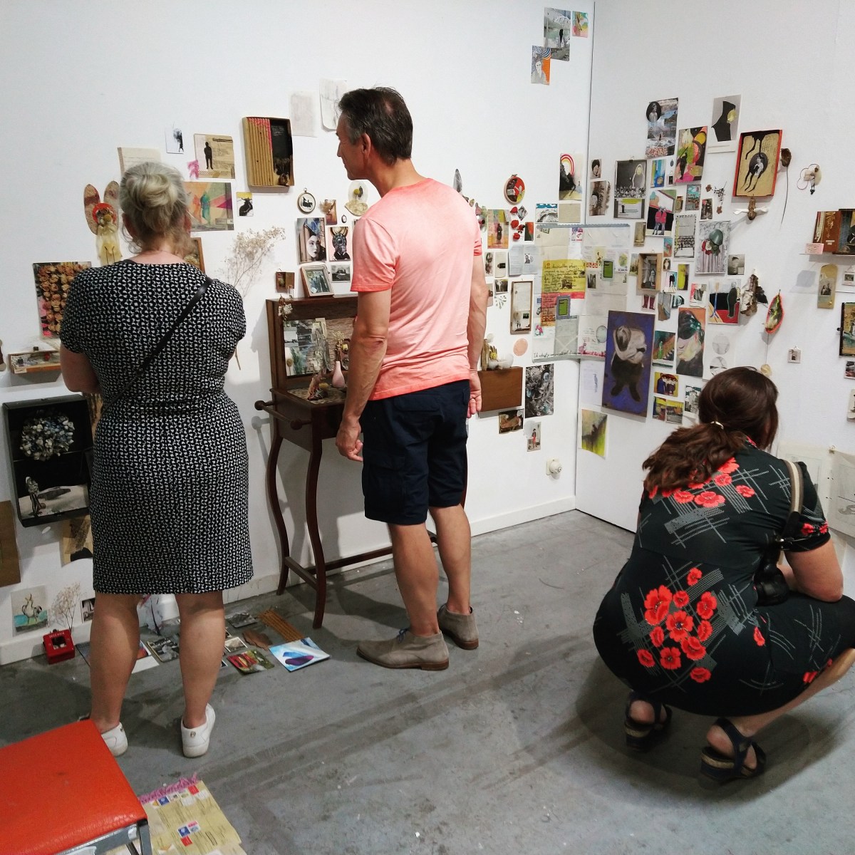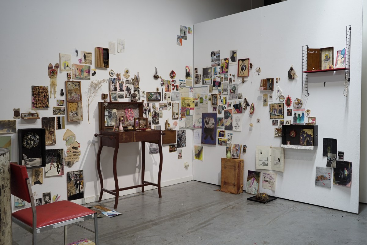 In mijn hoekje van de tentoonstelling zaten die dag regelmatig mensen gehurkt de kleine stukjes tekst te lezen die ik op mijn werken schrijf, wordt er voorzichtig gebladerd door de agenda op het tafeltje in mijn installatie en getuurd naar een werkje in de hoek.