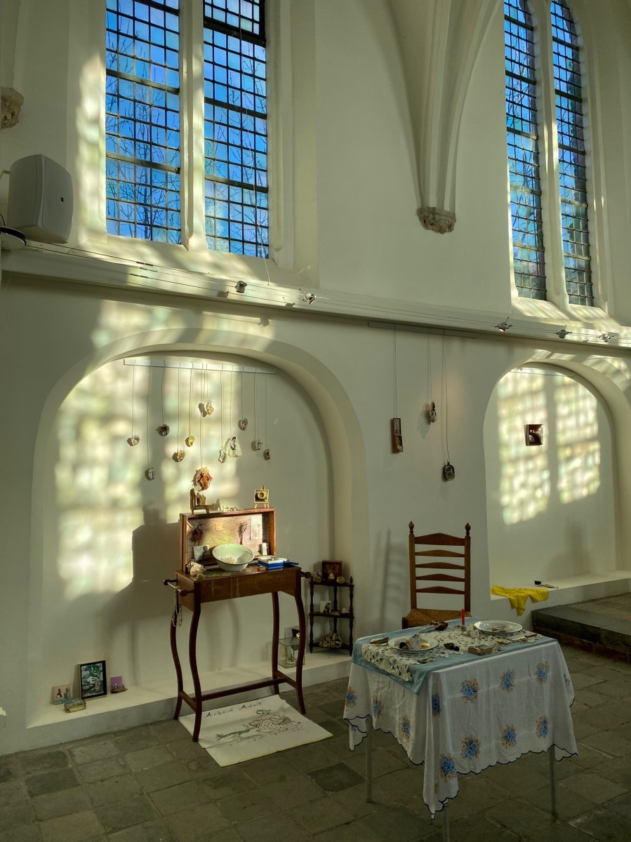Samen met de andere kunstenaars van Ongekuist organiseerden we een goed bezochte expositie in het kleinste kerkdorp van Nederland: Persingen. In een mooi, oud kerkje, onder de rook van Nijmegen, gaven wij in kunstvorm onze visie op de klassieke dagen van de week. (Maandag-wasdag, dinsdag-strijkdag, woensdag-gehakt en versteldag, donderdag-kuisdag en vrijdag-visdag).